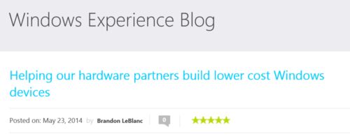 As we move forward, many of these lower cost devices will come with a new edition of Windows called Windows 8.1 with Bing. Helping our hardware partners build lower cost Windows devices Windows 8.1 with Bing(= ローコストWindows)が公式発…